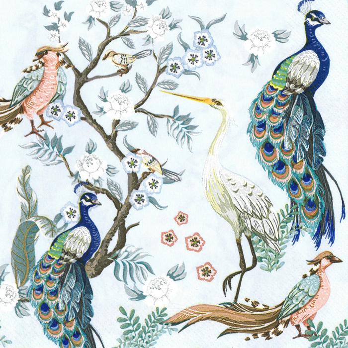 Papírový ubrousek Peacocks and Heron in Garden on Blue SDOG 033501