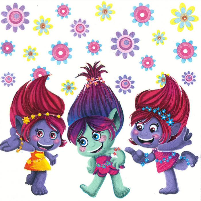 Papírové ubrousky Pol-Mak: Sweet Trolls, 20 ubrousků, třívrstvé, 33x33cm.