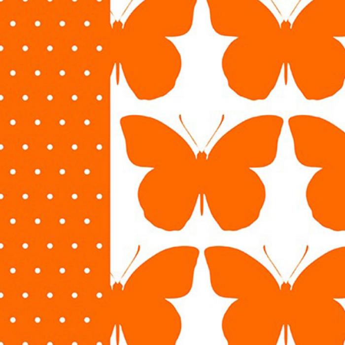 Papírový ubrousek Bright butterfly kat.č:SDL 930002EAN:0Skladem:ANOmin.odběr:1 bal po 20 ksVelikost:Lunch Výrobce:Paw Papírové ubrousky Paw: Bright butterfly, oranžové, 20 ubrousků, třívrstvé, 33x33cm.