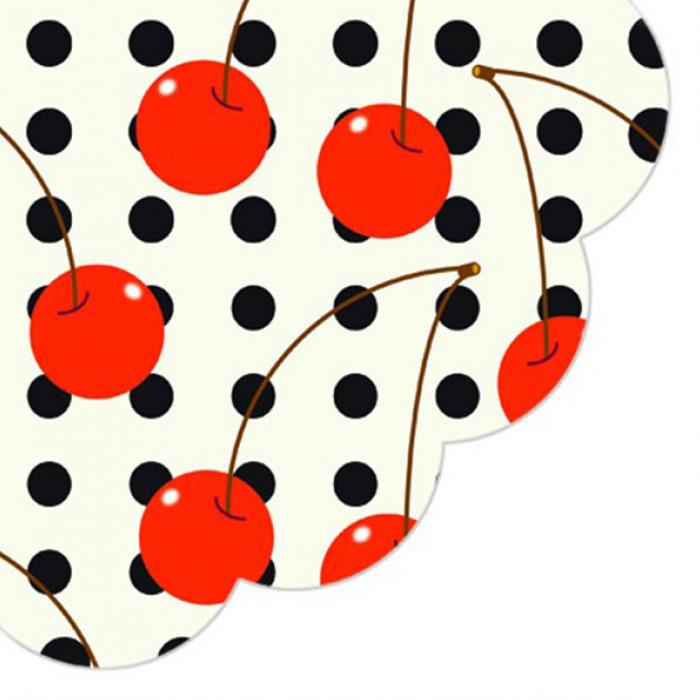 Papírové ubrousky Paw: Juicy Cherries, 12 ubrousků, třívrstvé, ø32cm.