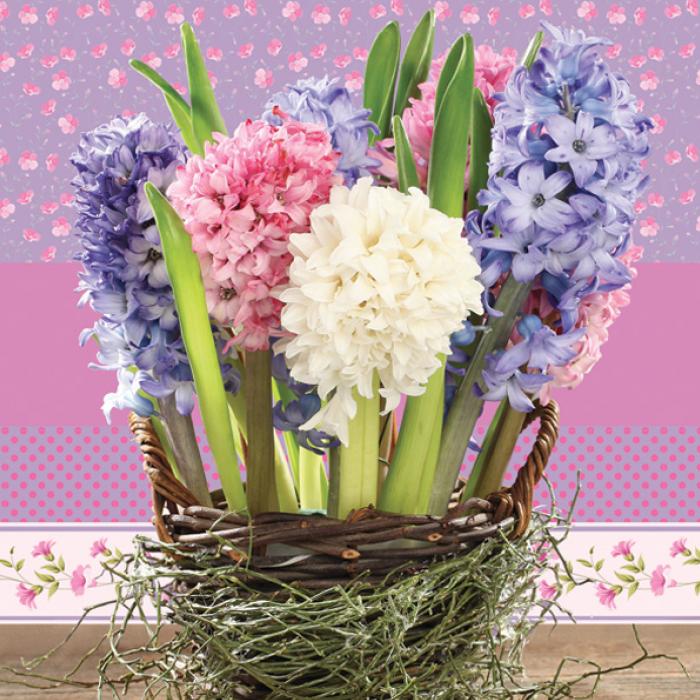 Papírové ubrousky Pol-Mak: Hyacinths in a Basket, 20 ubrousků, třívrstvé, 33x33cm.