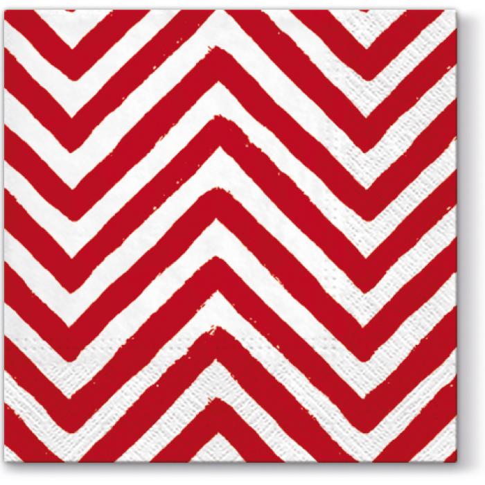 Papírové ubrousky Paw: Big Chevron, červené, 20 ubrousků, třívrstvé, 33x33cm.