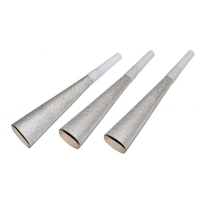 Party trumpetky 6ks stříbrné 818438 kat.č:8590331245024EAN:0Skladem:NEmin.odběr:1 bal po 6 ksVelikost:6 ks Výrobce:Wiky Papírová trumpetka s brokátem - stříbrná, 6 ks v balení.