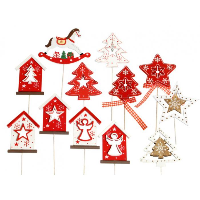 Vánoční zápich dřevěný 12ks v bílo-červeným provedení.