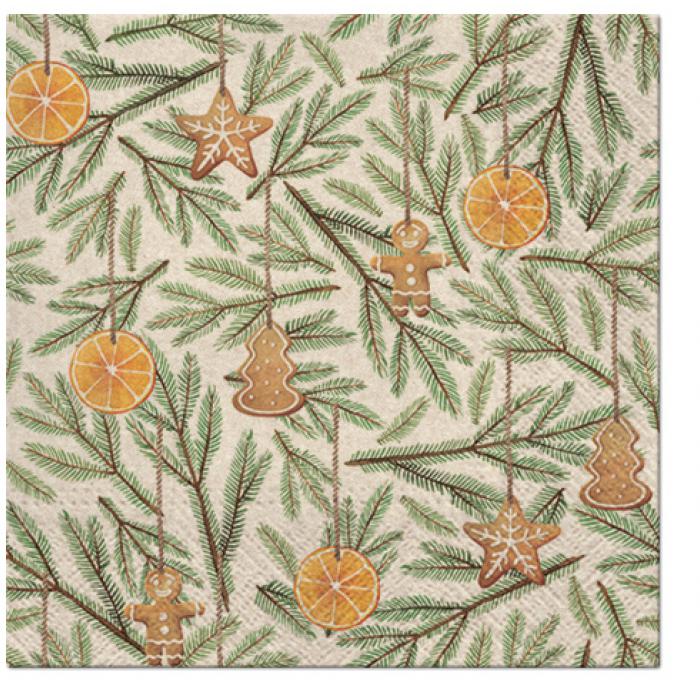Vánoční papírové 100% recyklovatelné ubrousky We Care - Gingerbreads and Twigs.