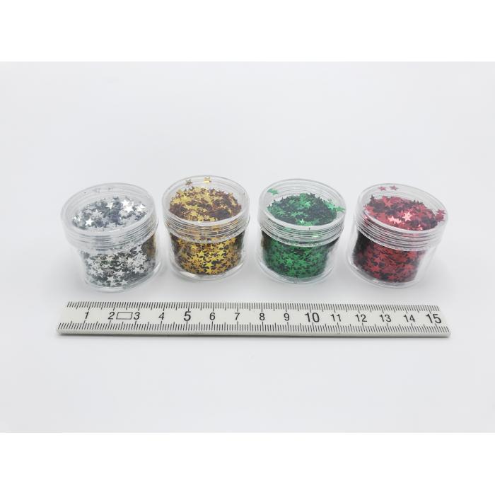 Metalické vánoční konfety v kelímku. Jeden kelímek obsahuje jednu barvu, celé balení obsahuje 12 kelímků.