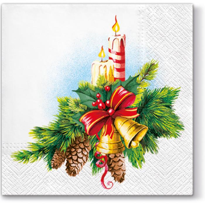 Vánoční papírové ubrousky Paw TeTe: Bells & Candles, 20 ubrousků, třívrstvé, 33x33cm.