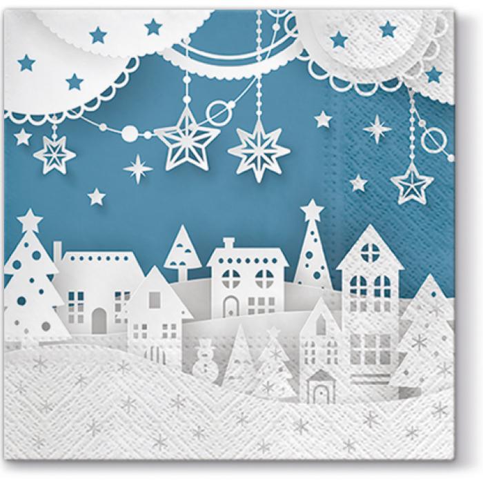 Vánoční papírové ubrousky Paw TeTe: Christmas Town, 20 ubrousků, třívrstvé, 33x33cm.