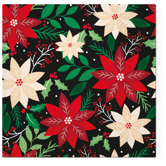 Vánoční papírový ubrousek Poinsettia Pattern kat.č:TL 801400EAN:0Skladem:NEmin.odběr:1 bal po 20 ksVelikost:Lunch Výrobce:Paw TeTe Vánoční papírové ubrousky Paw TeTe: Poinsettia Pattern, 20 ubrousků, třívrstvé, 33x33cm.