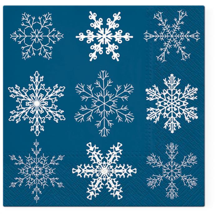 Vánoční papírové ubrousky Paw TeTe: Snowflakes - modrý, 20 ubrousků, třívrstvé, 33x33cm.