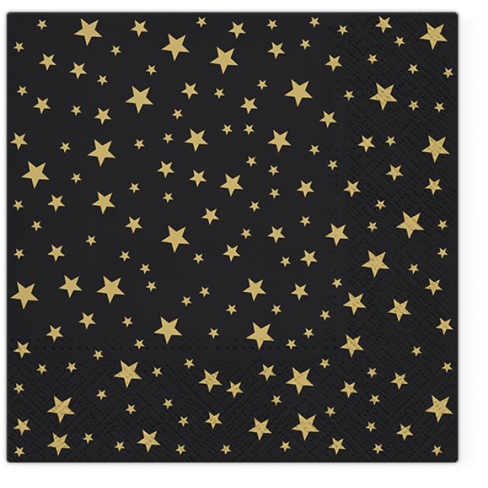 Vánoční papírové ubrousky Paw TeTe: Starlets - černý, 20 ubrousků, třívrstvé, 33x33cm.