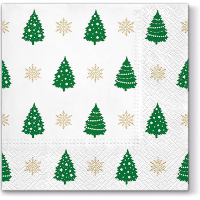 Vánoční papírové ubrousky Paw TeTe: Trees Pattern - zelené, 20 ubrousků, třívrstvé, 33x33cm.