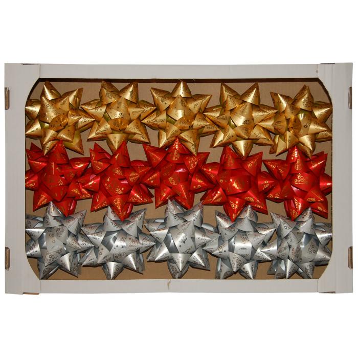 Vánoční rozeta Maxi - 15 ks mix kat.č:Maxi - 15 ksEAN:59045428Skladem:ANOmin.odběr:1 bal po 15 ksVelikost:Ø 15,5 cm Výrobce:Navia Ručně tvarovaná rozeta s vánočním motivem.Počet rohů 22.Balení obsahuje mix barev.