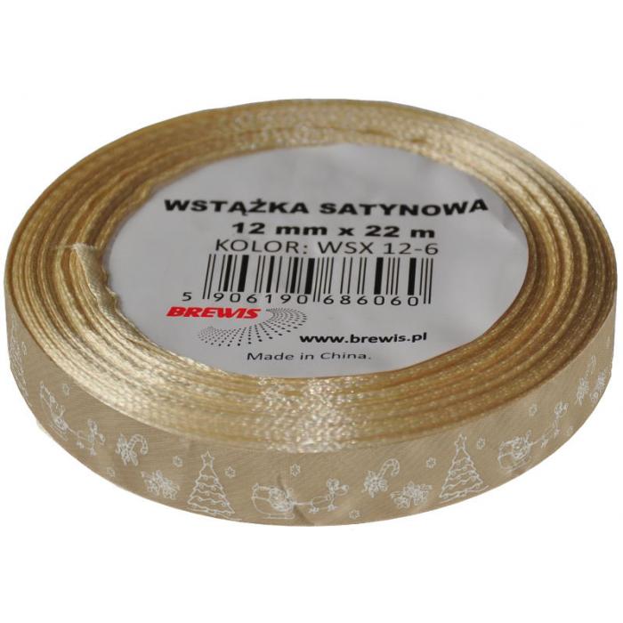 Stuha atlasová - vánoční 12mm béžová WSX 12-13 kat.č:590619068868EAN:0Skladem:NEmin.odběr:1 ksVelikost:12mm x 22m Výrobce:Brewis Atlasová stuha jednolící - vánoční motiv. 12mm x 22m.Barva: béžová.