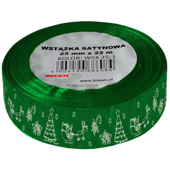 Stuha atlasová - vánoční 25mm zelená WSX 25-9