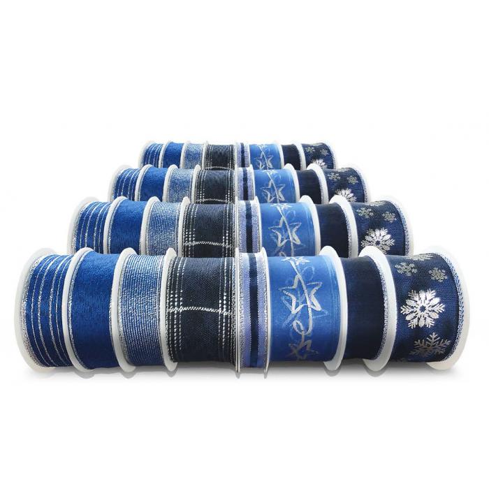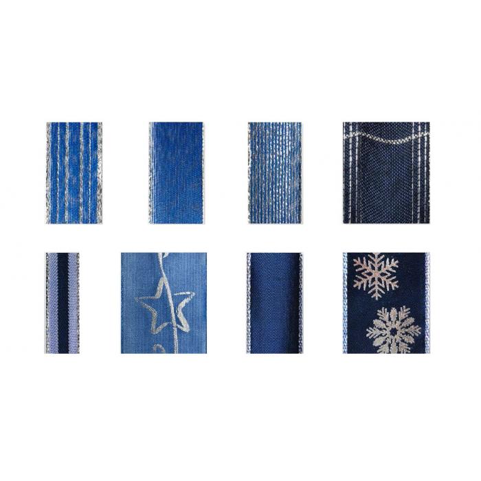 Vánoční stuhy s drátkem - modré kat.č:W 188EAN:4025571069108Skladem:NEmin.odběr:1 bal po 32 ksVelikost:32 ks Výrobce:Konrad Arnold Dekorační stuhy s drátkem - modré.Balení obsahuje:12x 40mm/2m16x 25mm/3m4x 15mm/4m