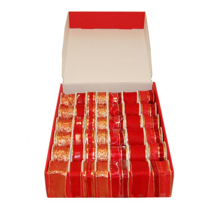 Vánoční stuhy s drátkem - červené POW 2002 kat.č:4025571082619EAN:0Skladem:NEmin.odběr:1 bal po 42 ksVelikost:42 ks Výrobce:Konrad Arnold Dekorační stuhy s drátkem - červené.Balení obsahuje:18x 25mm/3m24x 40mm/2m