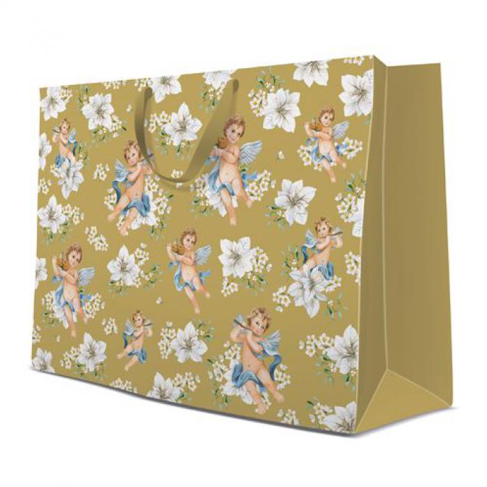Vánoční taška Angles in Flower XXL podélná kat.č:AGB 2011501EAN:0Skladem:ANOmin.odběr:1 bal po 10 ksVelikost:44 x 54 x 16 cm Výrobce:Paw Vánoční dárková taška Angles in Flower.velikost: XXL podélná