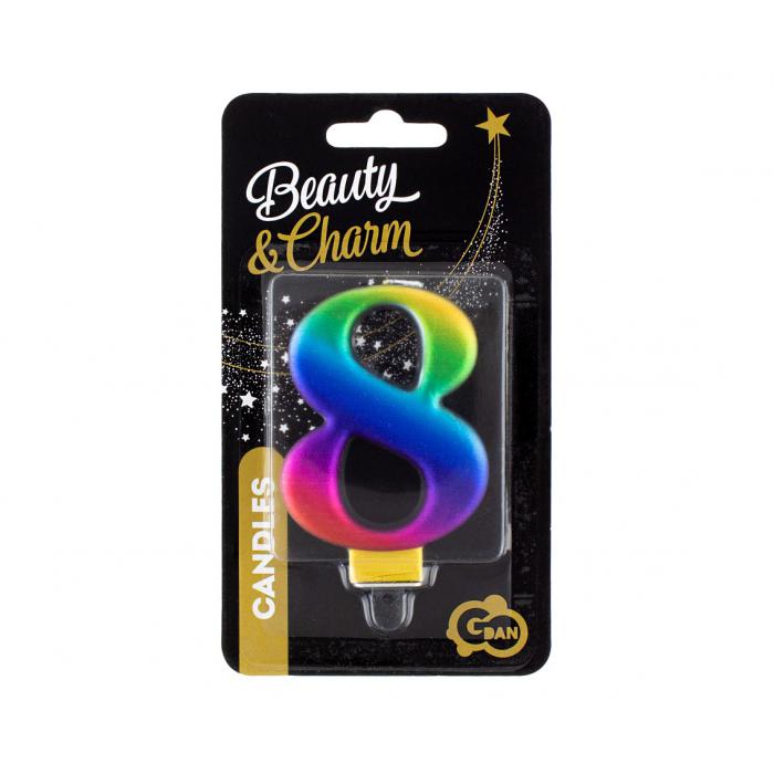 Dortové svíčky č.8 duhové kat.č:15246EAN:5902973115246Skladem:ANOmin.odběr:1 balVelikost:č. 8 Výrobce:Godan Duhová dortová svíčka č. 8 s metalickým leskem.