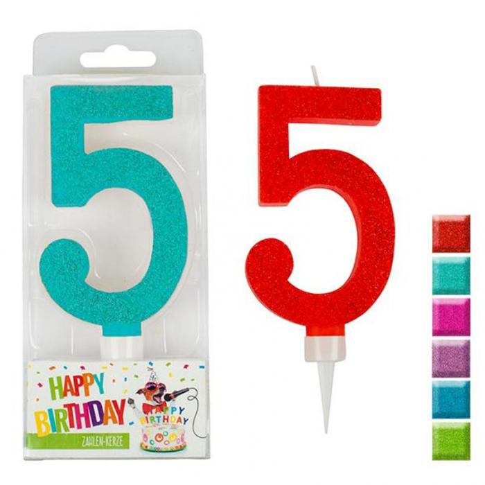 Dortová svíčka č. 5 - maxi glitter kat.č:4032722942036EAN:0Skladem:NEmin.odběr:1 ksVelikost:č. 5 Výrobce:Trendhaus Třpytivá svíčka č.5 - maxi glitter.Velikost: 9,5 cmMix několika barev.