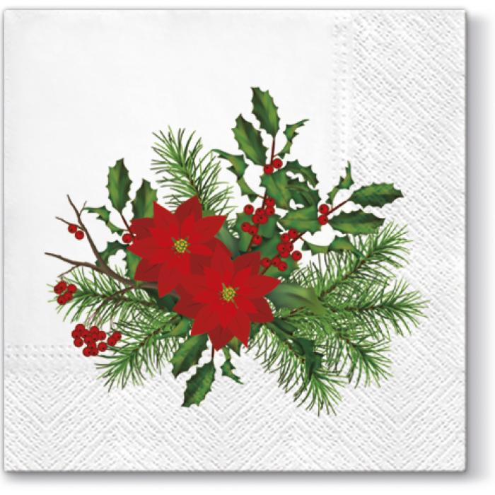 Vánoční papírový ubrousek Paw TeTe - Poinsettia with Holly.