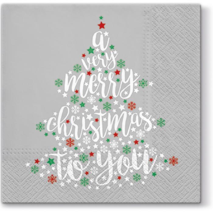 Papírové vánoční ubrousky Paw z kolekce Very Christmas - šedé, 33 x 33 cm, třívrstvé.