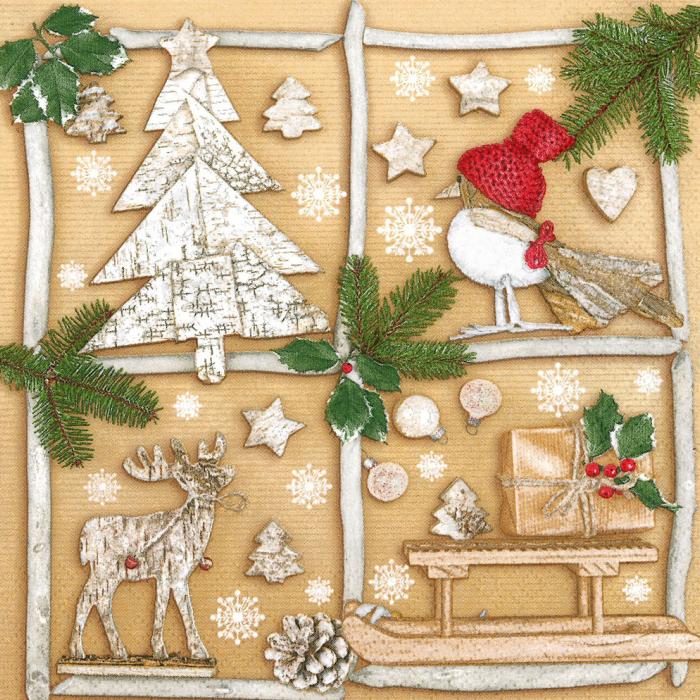 Vánoční ubrousek Winter Handmade Elements kat.č:SLGW 017501EAN:0Skladem:NEmin.odběr:1 bal po 20 ksVelikost:Lunch Výrobce:Pol-Mak Vánoční papírový ubrousek Pol-Mak - Winter Handmade Elements.33 x 33 cm (lunch), tří vrstvé.