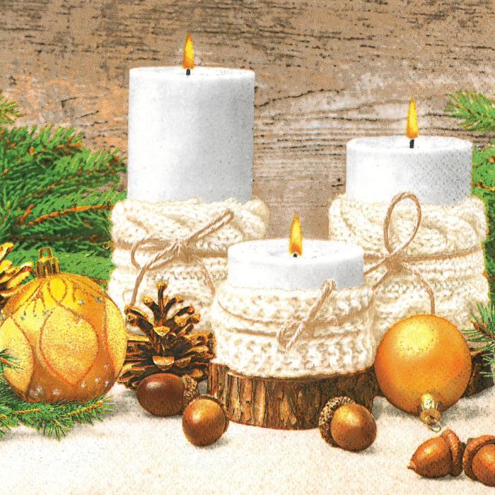 Vánoční papírový ubrousek Pol-Mak Daisy - Xmas Candles in Knitting Sweater.