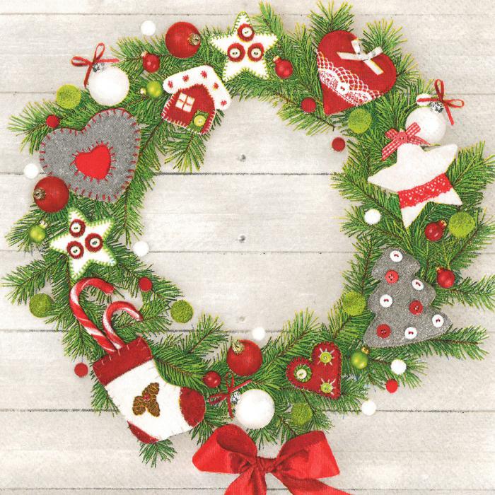 Vánoční papírový ubrousek Pol-Mak Daisy - Xmas Wreath witg Felt Decorations.
