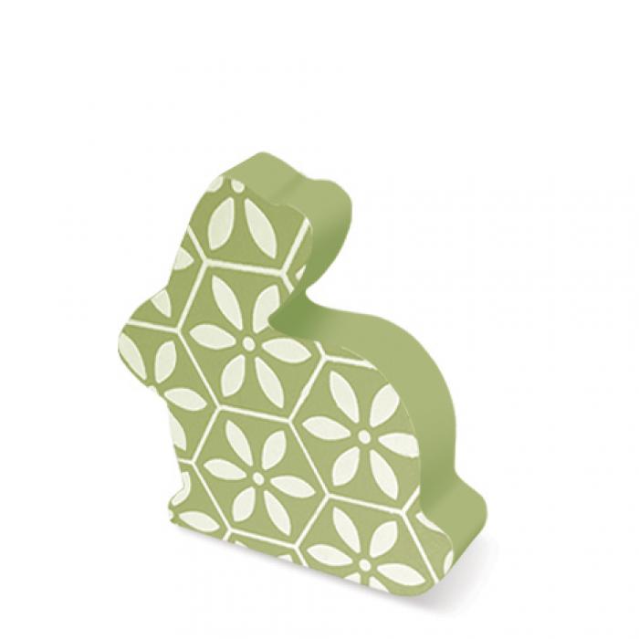 Dekorace ze dřeva ve tvaru zajíce v zeleném provedení.
