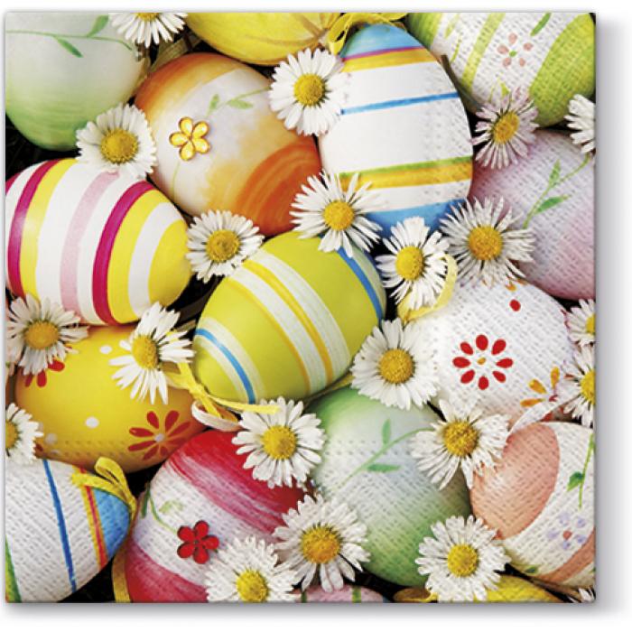 Velikonoční papírové ubrousky Paw TeTe z kolekce Daisies among Eggs, 20 ubrousků, třívrství, 33x33cm.