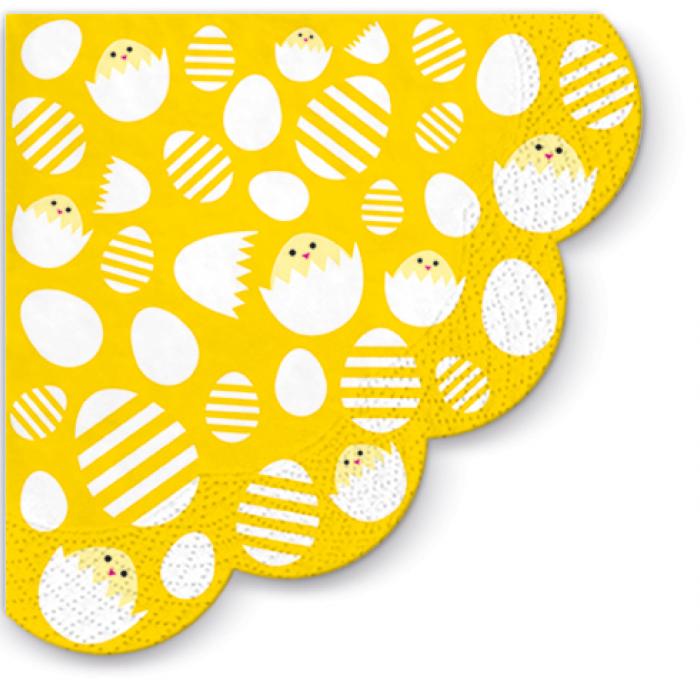 Velikonoční papírové ubrousky Paw z kolekce Egg or Chick - žluté, 12 ubrousků, třívrstvé, ø32cm(round).