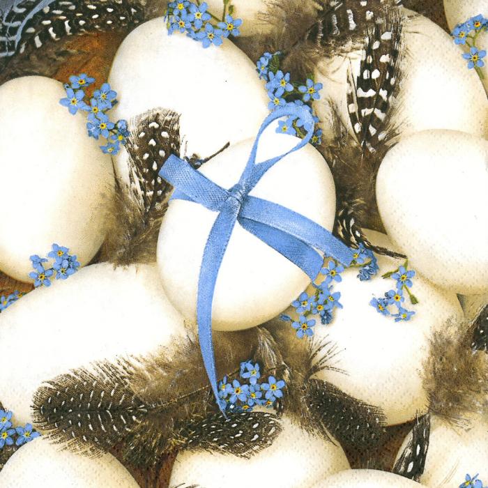 Velikonoční papírové ubrousky Pol-Mak: Eggs on Quail Feathers, 33 x 33 cm, třívrstvé.