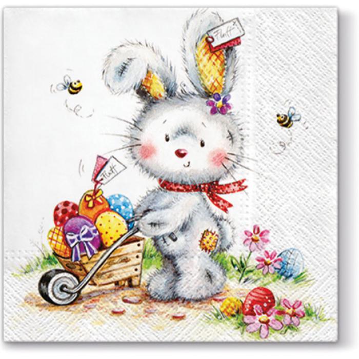 Velikonoční ubrousek Fluffy Bunny kat.č:TL 345000EAN:0Skladem:NEmin.odběr:1 bal po 20 ksVelikost:Lunch Výrobce:Paw TeTe Velikonoční papírové ubrousky Paw TeTe z kolekce Fluffy Bunny, 33 x 33 cm, třívrstvé.