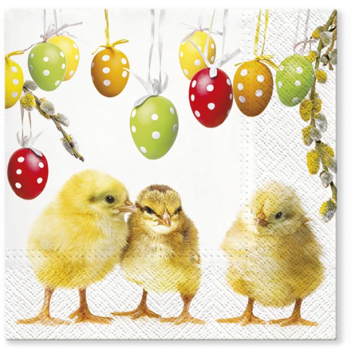 Velikonoční papírové ubrousky Paw TeTe z kolekce Cheerful Chicks, 20 ubrousků, třívrství, 33x33cm....