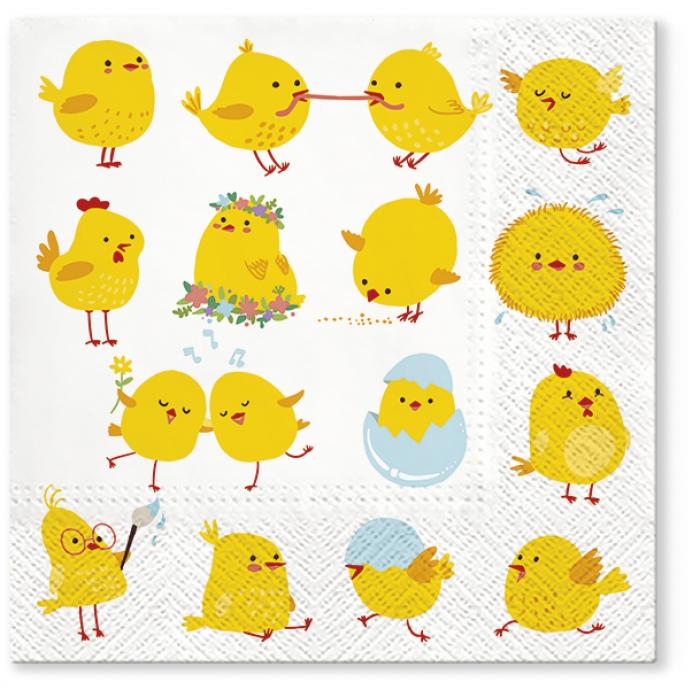 Velikonoční papírové ubrousky Paw TeTe z kolekce Cheerful Chicks, 20 ubrousků, třívrství, 33x33cm.