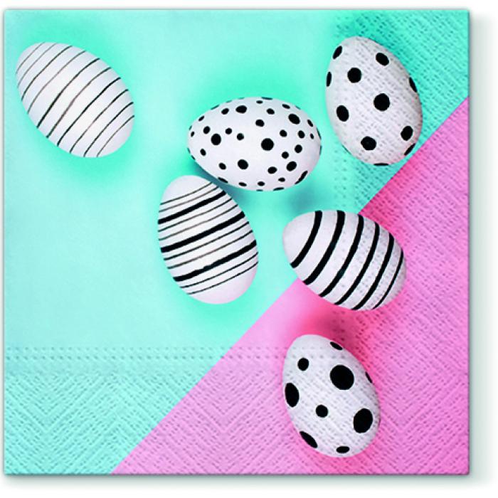 Velikonoční papírové ubrousky Paw z kolekce Modern Eggs, 20 ubrousků, třívrstvé, 33x33cm.