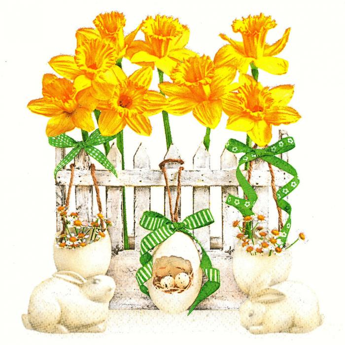 Velikonoční papírové ubrousky Pol-Mak Daisy z kolekce Fance with Rabbit and Yellow Daffodils, 33 x 33 cm, třívrstvé.