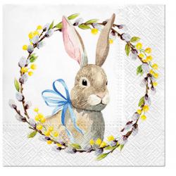 Velikonoční papírové ubrousky Paw z kolekce Rabbit with Catkins, 20 ubrousků, třívrstvé, 33x33cm....