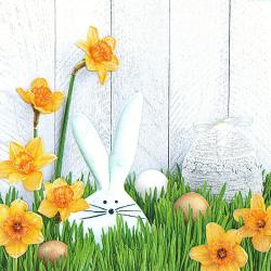 Velikonoční papírové ubrousky Pol-Mak z kolekce Concrete Rabbit and Eggs with Yellow Tulips, 20 ubro...