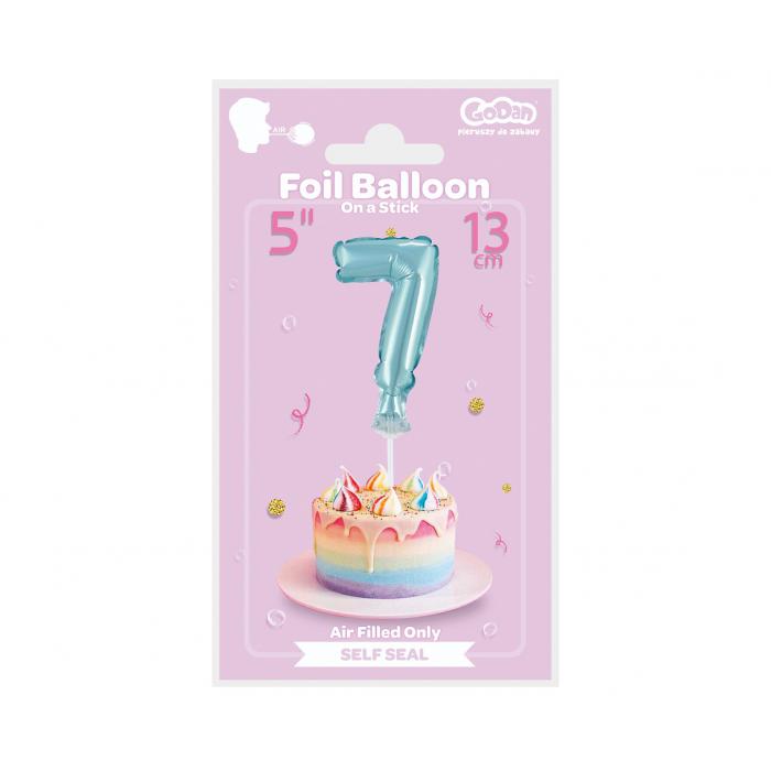 Fóliový balónek do dortu č.7 modrý kat.č:13846EAN:5902973113846Skladem:ANOmin.odběr:1 ksVelikost:13 cm Výrobce:Godan Nafukovací fóliový balónek do dortu č.7