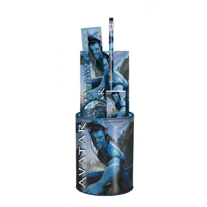 Obsahuje: kovový kelímek, pravítko, tužka, spona na papír, pryž a ořezávátko.