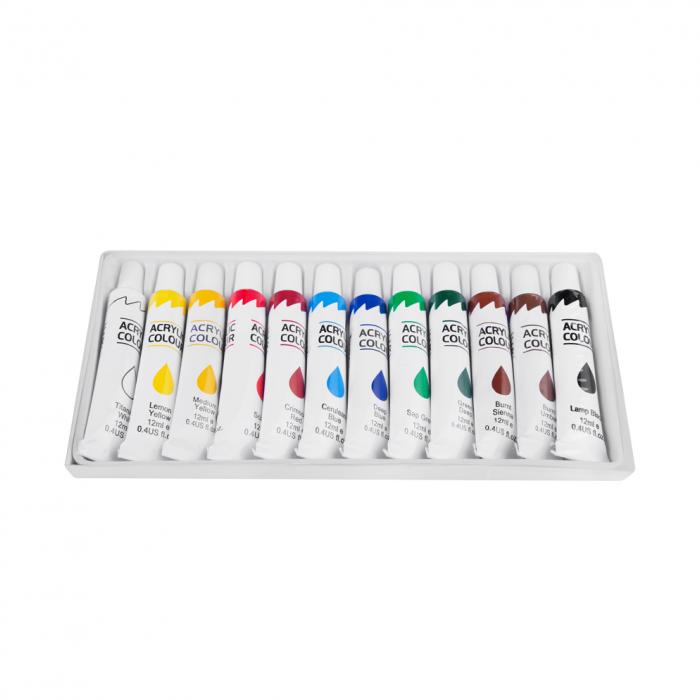 Školní akrylové barvy, balení obsahuje 12 barev.