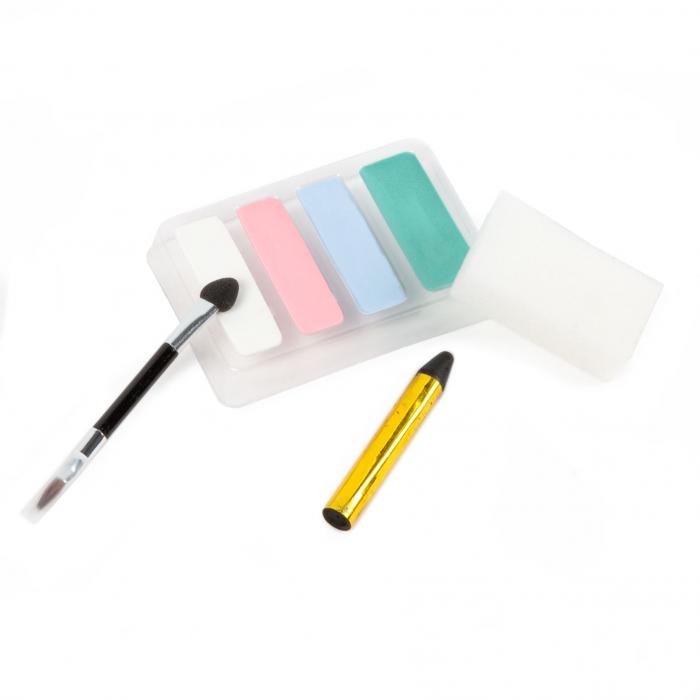 Sada barev na obličej se samolepkami. Barvy jsou bezpečné, dermatologicky testované.