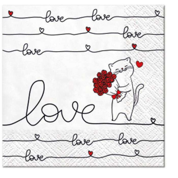 Papírové ubrousky Paw: Love Connection, 20 ubrousků, třívrstvé, 25x25cm.