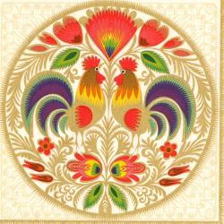 Papírové ubrousky Pol-Mak: Folk Cocks Red & Cream, 20 ubrousků, třívrstvé, 33x33cm.