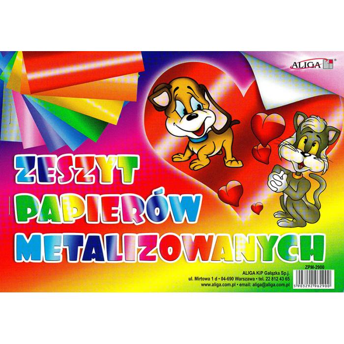 Sešit obsahuje 8 listů 17,5 x 25 cm barevného metalického papíru 80g.