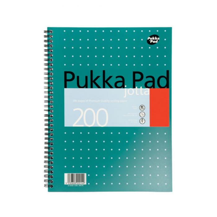 PUKKA blok A4 spirálový Metalic-JM018 kat.č:JM018EAN:6032608000149Skladem:ANOmin.odběr:1 bal. po 3 ksVelikost:A4 • 100 listů Výrobce:Pukka Poznámkový blok s boční spirálou, A4 100 listů, linkovaný. Perforované stránky.Papír 80g/m2.
