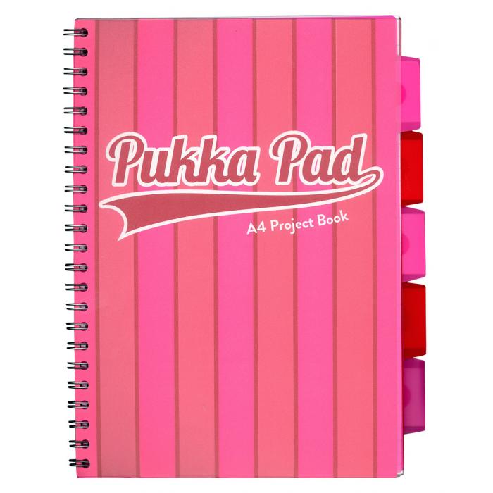 Poznámkový blok s boční spirálou a polypropyleonvým obalem, A4, 100 listů, linkovaný. Barevné rozlišovače pro lepší orientaci. Perforované stránky.